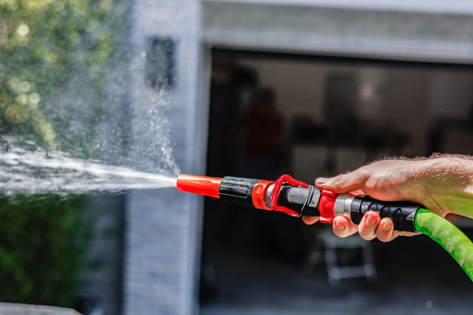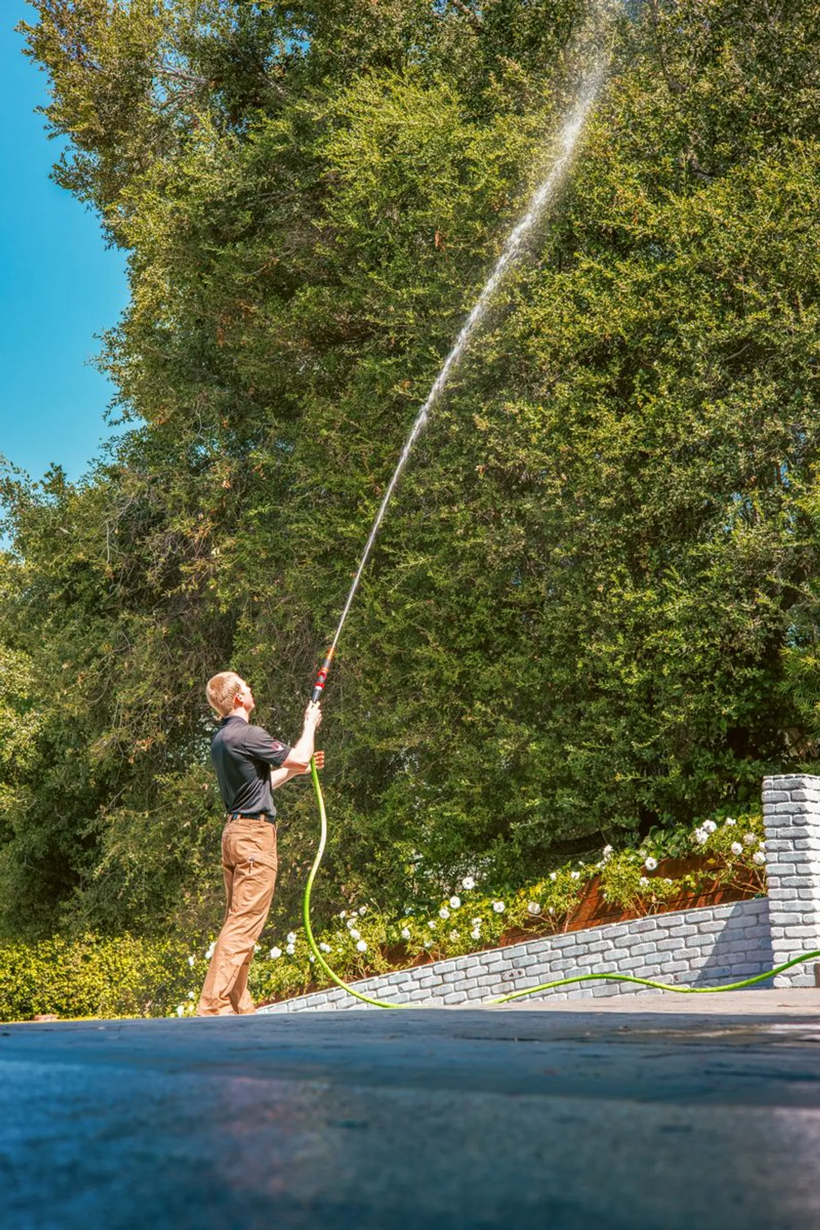 Adjustable spray nozzle with 30-foot reach. 130 feet total coverage in all directions from the unit placement point.